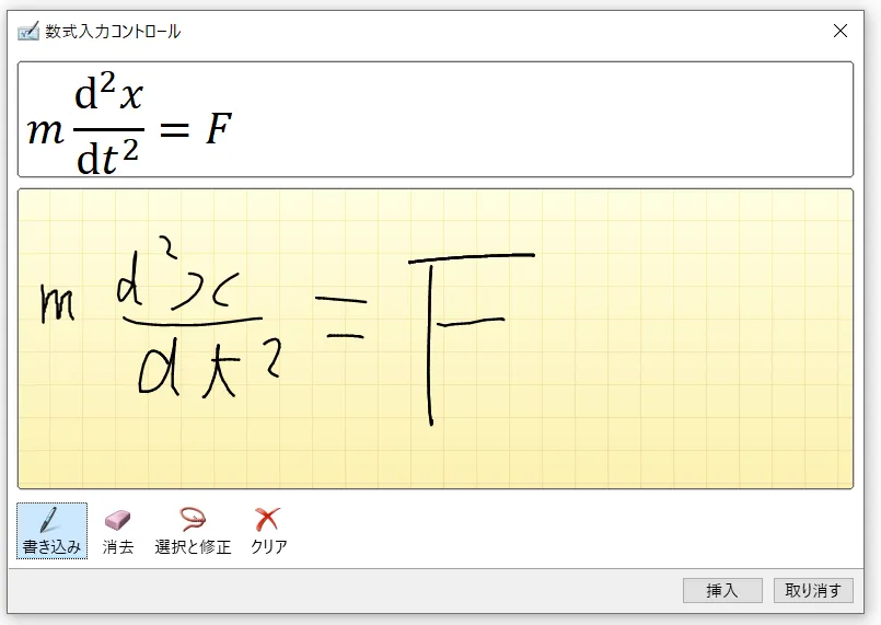 数式を手書きで書き込むと下図のように読み取ってくれます.