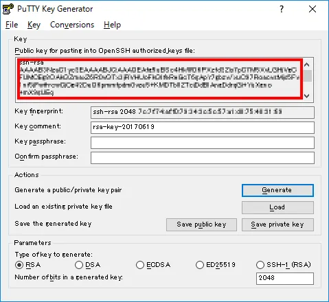 - 「Generate」を選択して,鍵ペアを生成してください.