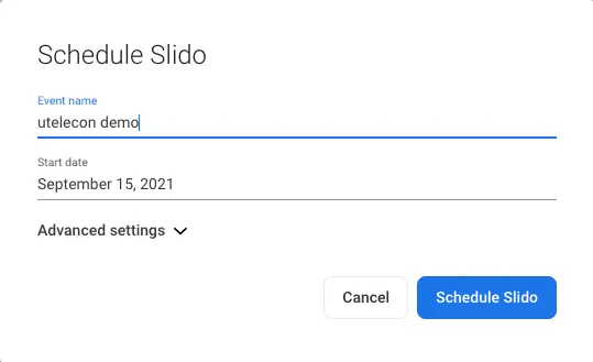 - Select “Create Slido” or “New Slido” on the screen, and then enter the “Event name” and “Start date.”