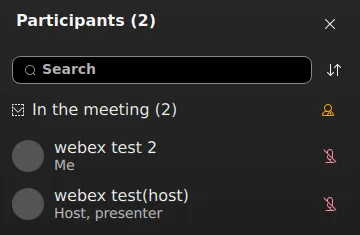 • Microphone icon: Participants with a red microphone icon have their microphones muted. The host can also mute participants’ microphones. In the above figure, the microphone of the test attendee is muted.