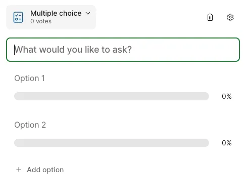 投票を作成するには,画面左上の「+Add (Add new interaction)」を選択してください.