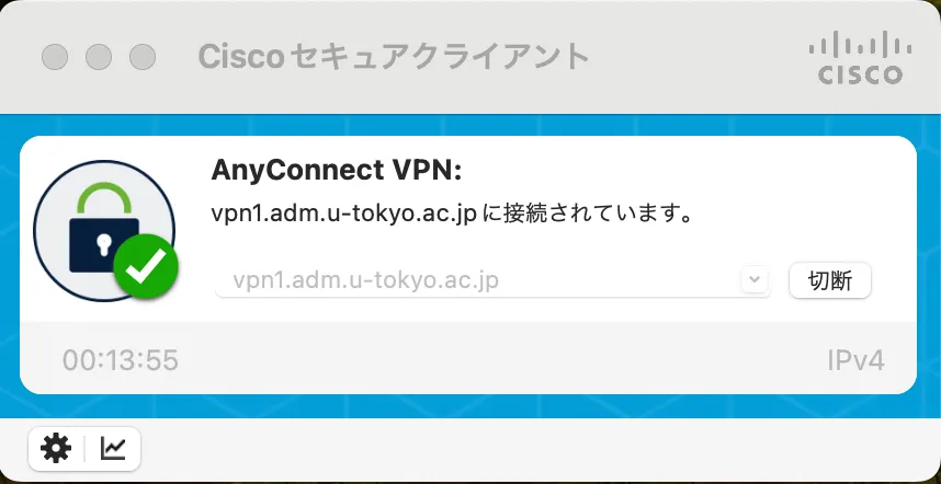 VPNを切断する際は,この画面の「切断」ボタンをクリックしてください.